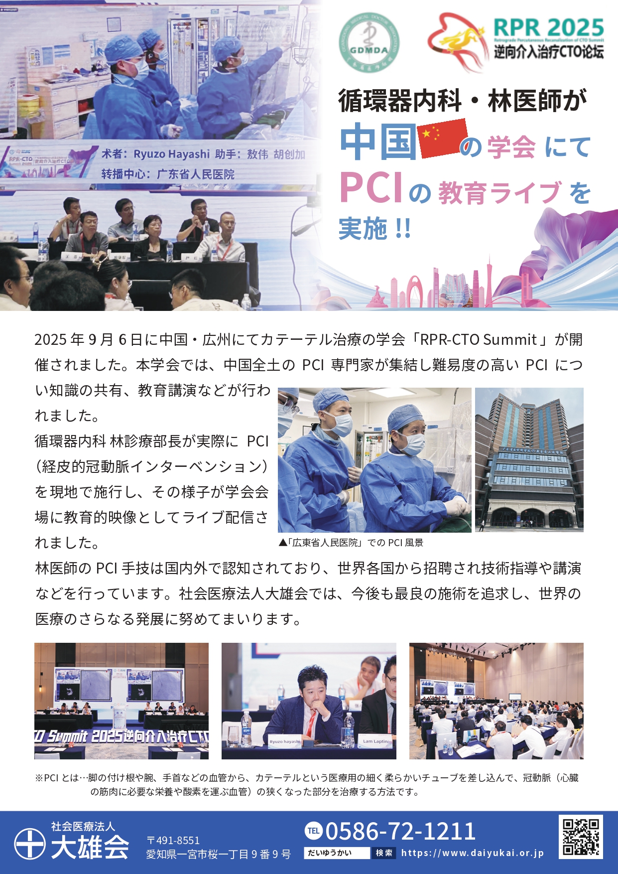 地域医療支援病院である総合大雄会病院では、「地域の医療従事者の資質向上を図る」ことを目的に、定期的に医療従事者向けの研修会を開催しております。その一環で実施した循環器テーマの研修会の内容を、以下からご覧いただけます。※一般の方(患者さま、ご家族さま)もご覧いただける内容となっております。