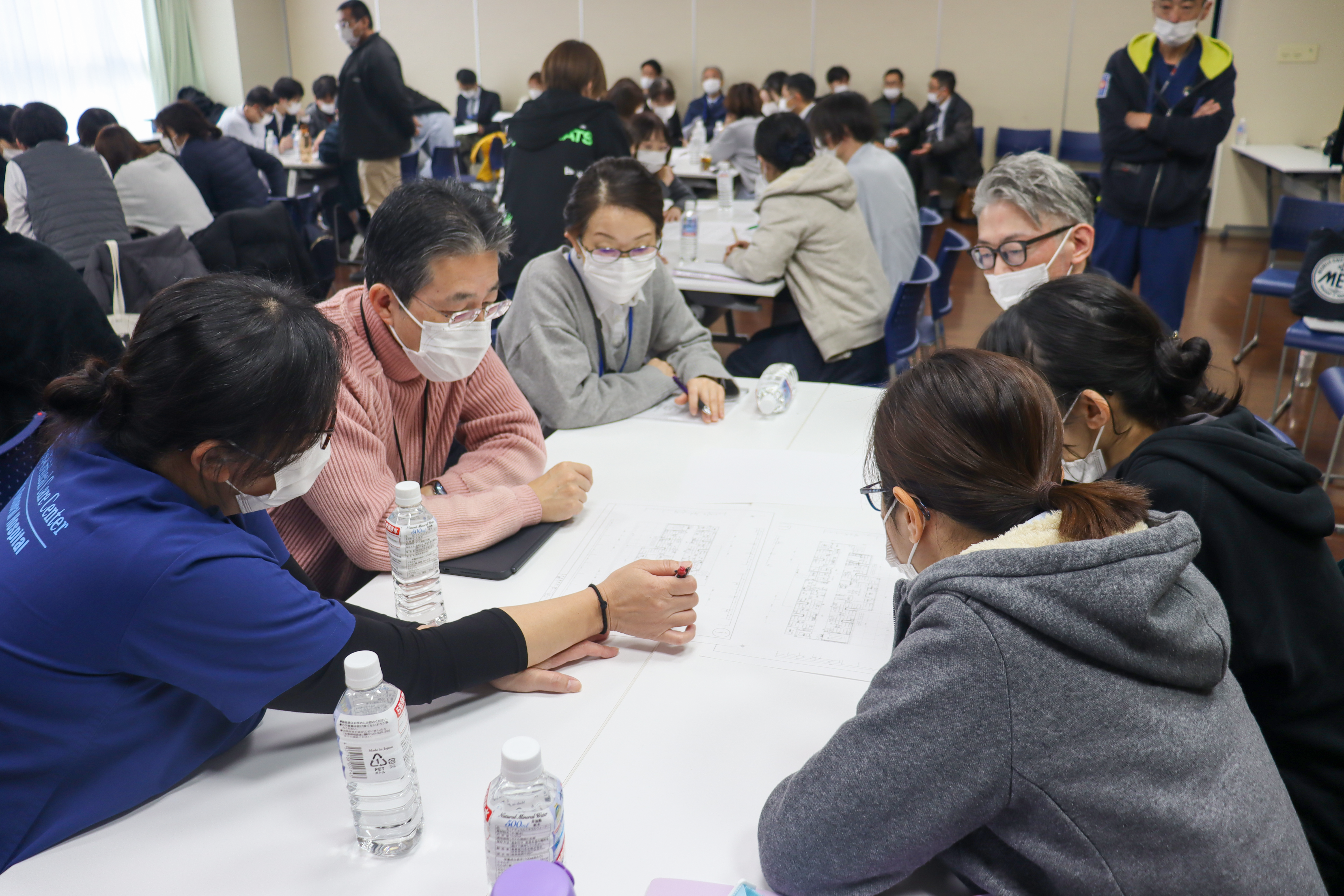 訓練の後には、病棟内における非常用トイレの設置位置などについて、様々な可能性を考慮しながらグループ討論を行いました。