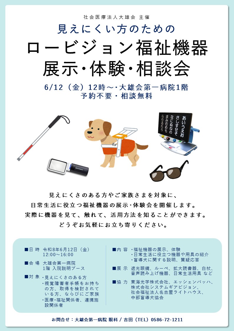 お知らせ【眼科】6/12 ロービジョン福祉機器 展示・体験・相談会のご案内